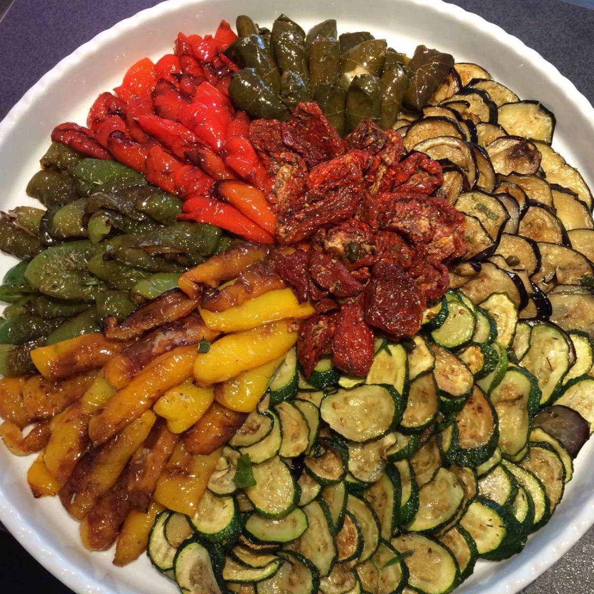 mediterrane Gemüsepfanne, Spinatlasagne, gefüllte Hühnerbrust mit Gorgonzola und Spinat,