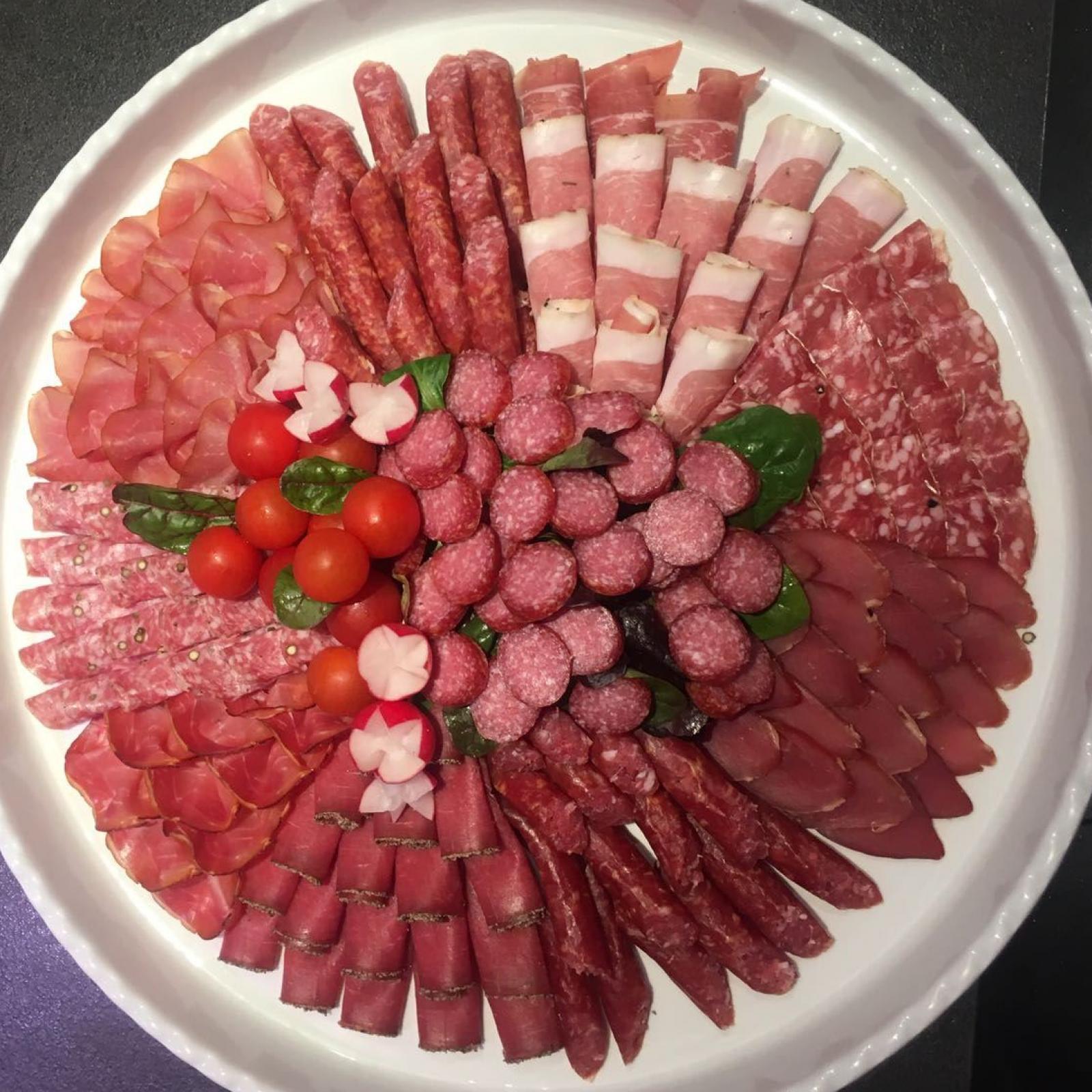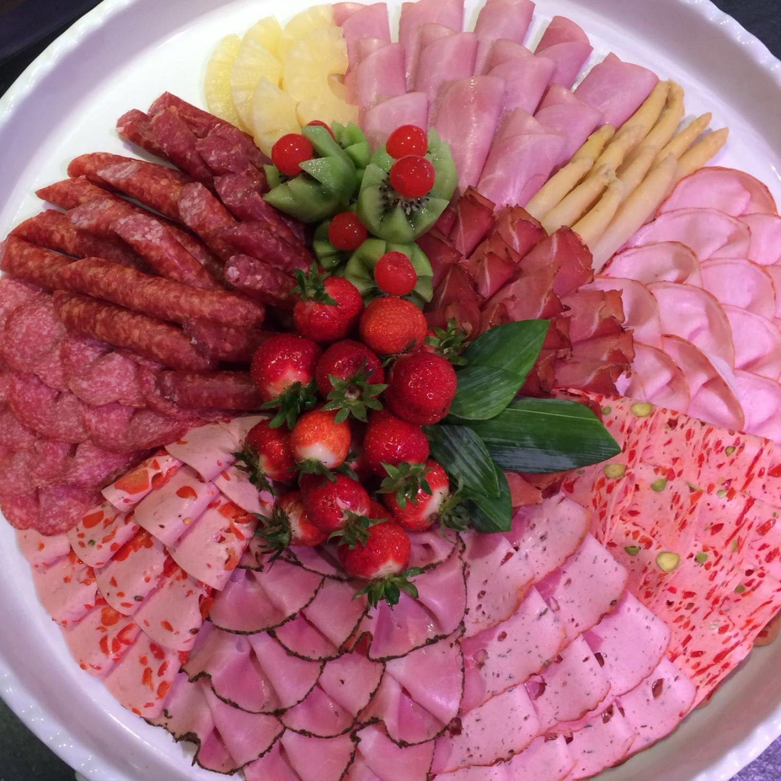 Schinken-Käse-Platten, Tomate-Mozzarella, Flädlesuppe,
