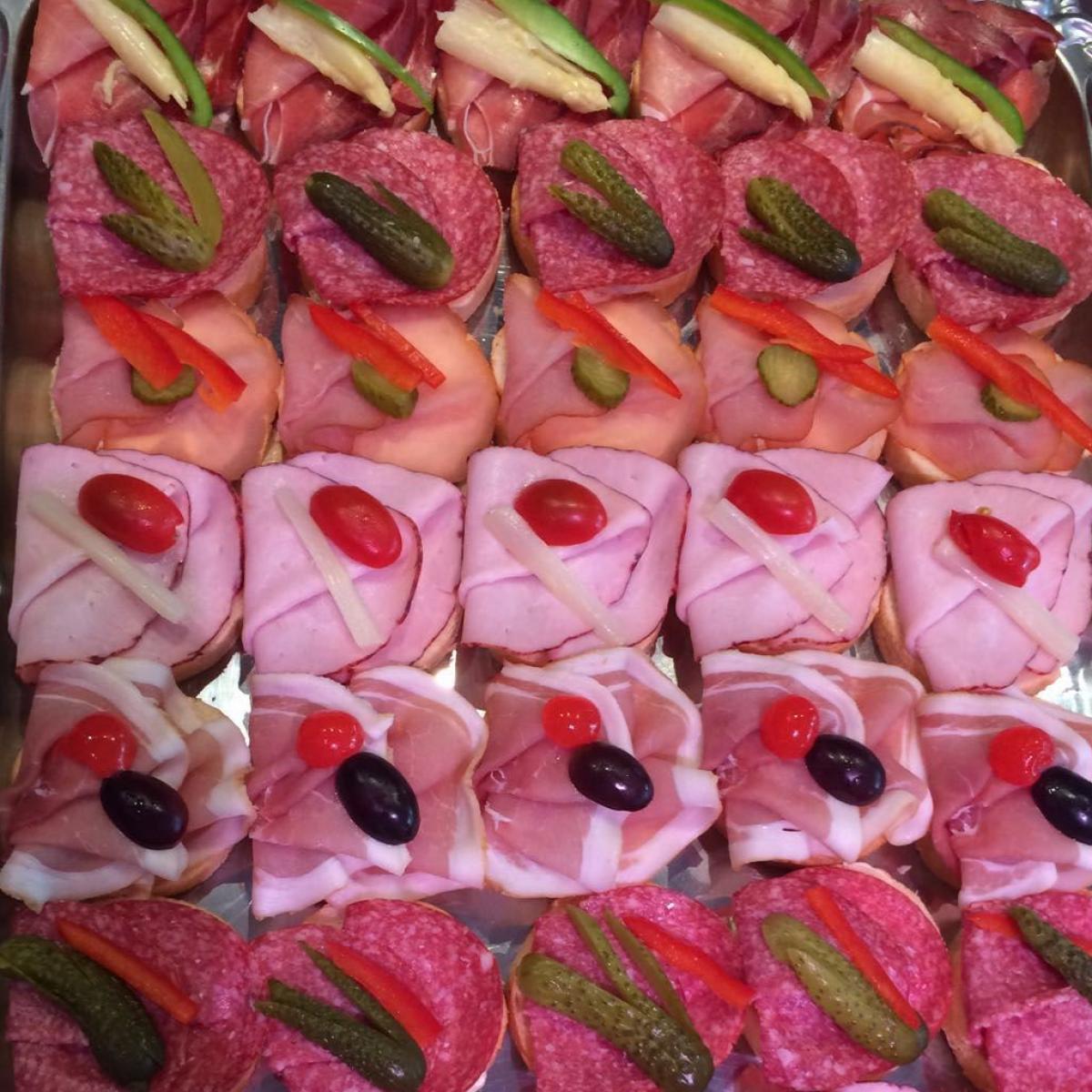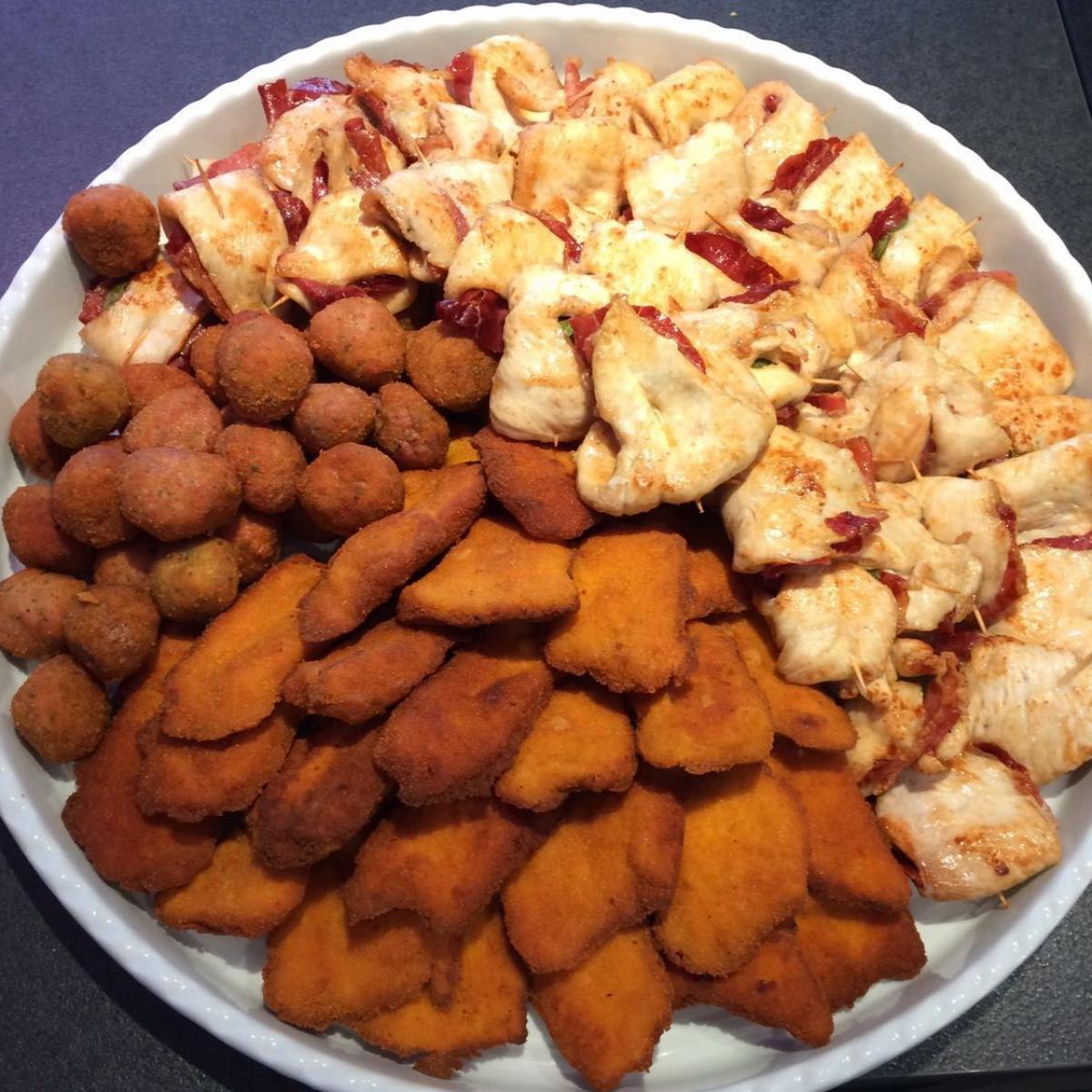Canapés, Mini-Schnitzel, Fleischbällchenspieße,