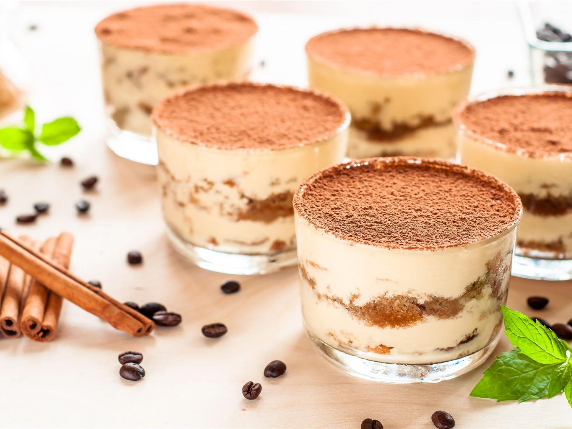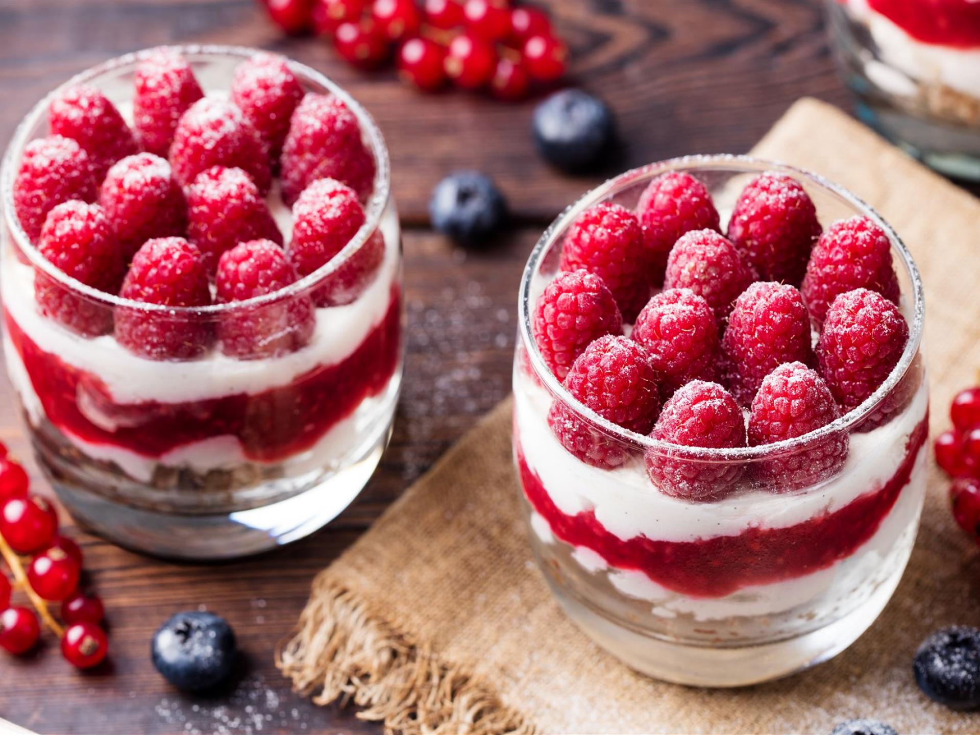 Tiramisu, Rote Grütze mit Vanillesoße, verschiedene Mousses,