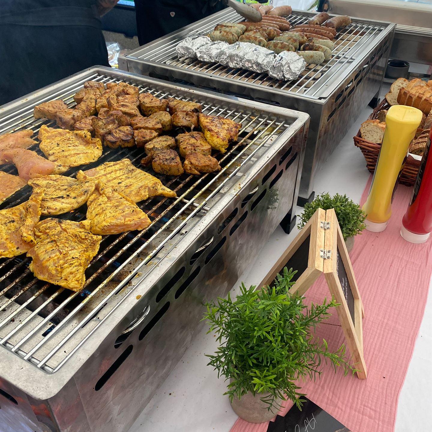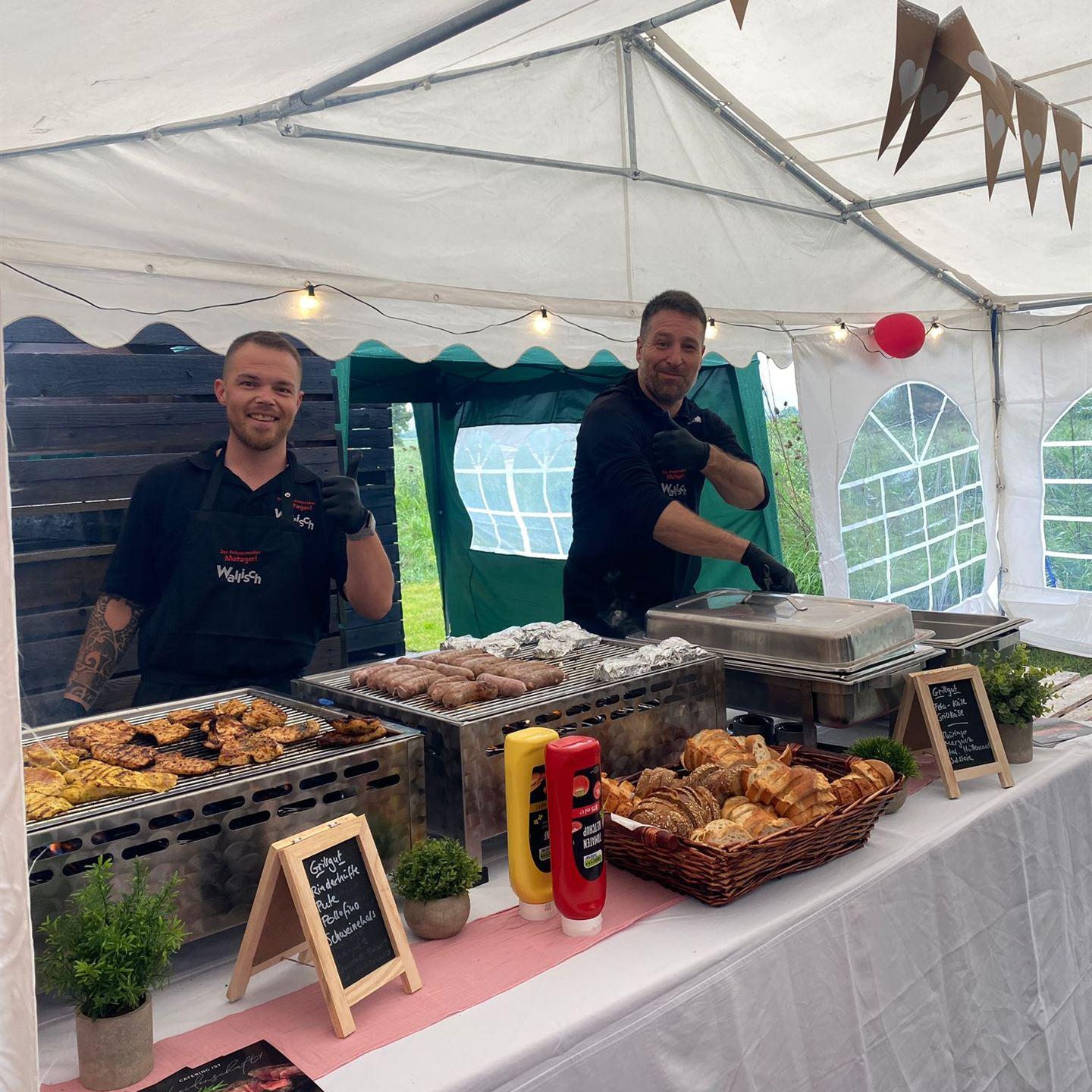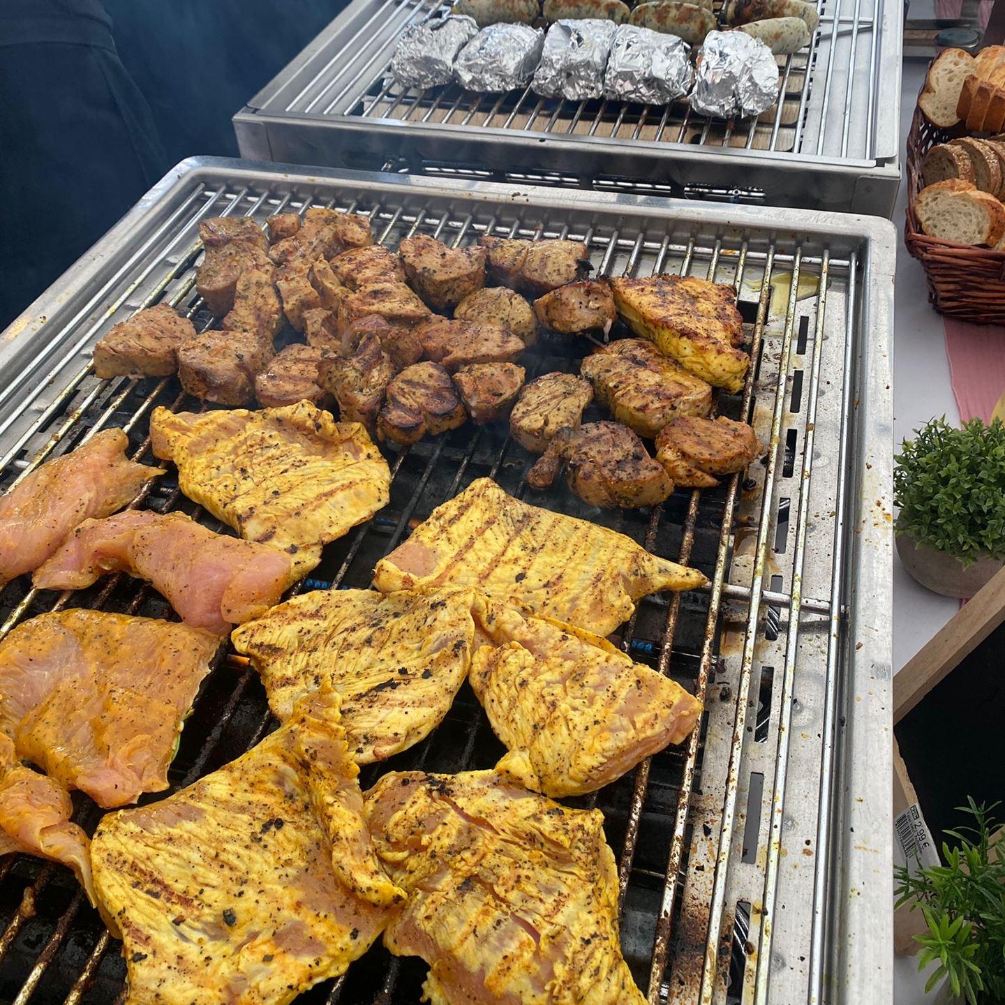 Unsere erfahrenen Grillmeister grillen für Sie eine große Auswahl an Fleisch- und Wurstspezialitäten.