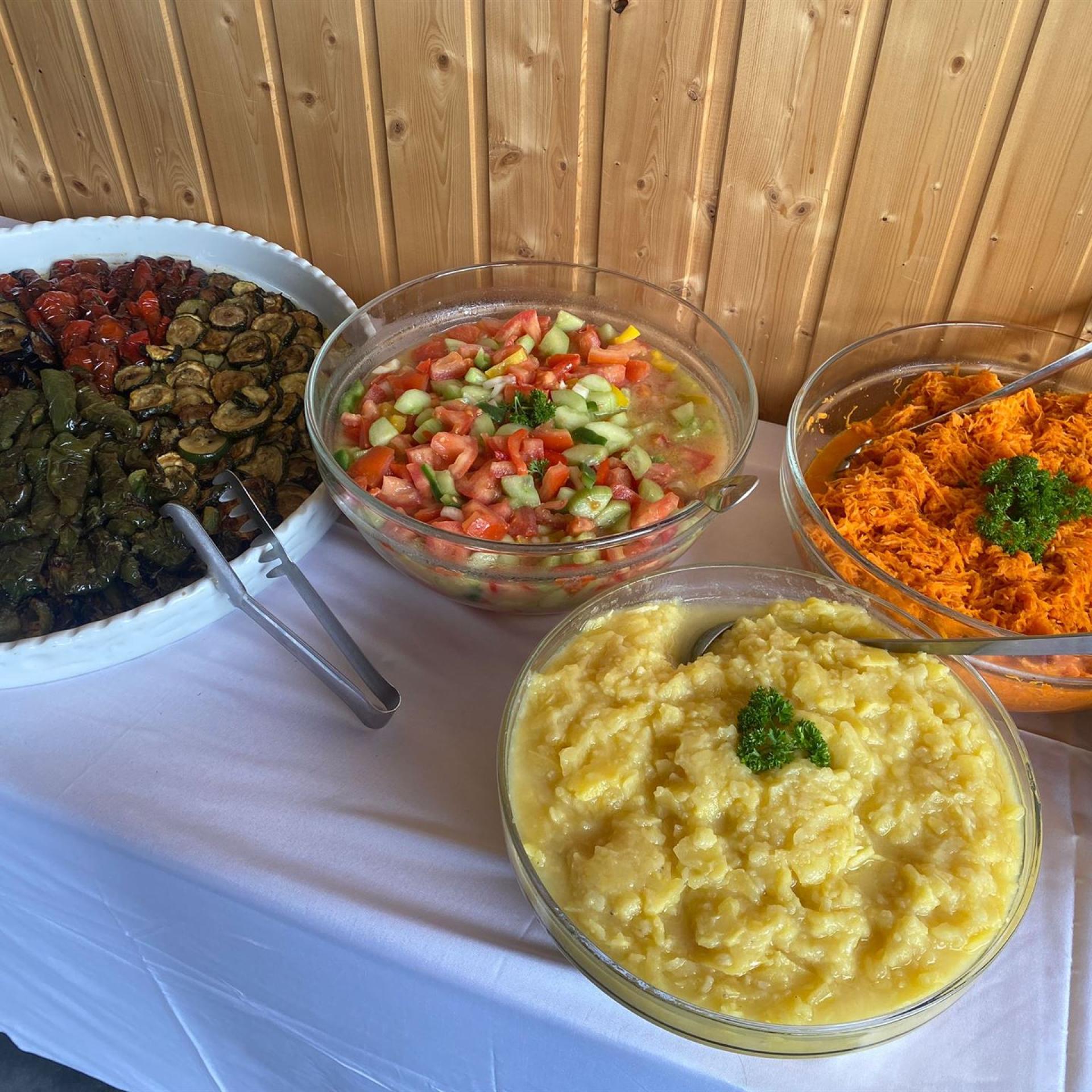 Abgerundet wird das Buffet mit verschiedenen Salaten und Beilagen sowie vegetarischen Spezialtäten.